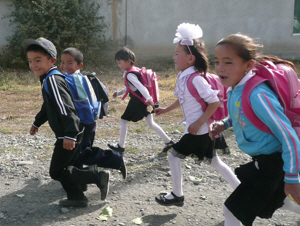 Whilst I was blogging in our Osh hotel, Keith had been on a mission to print out some photos to send to the teahouse owner who’d let us camp in his back garden (see previous blog entry), and whilst out and about he was approached by a man who, on the pretext of asking the time, struck up conversation with him in pretty good English. It transpired that Keith’s new friend, Talen, was on his way to an English conversation class in the Centre for American Studies and invited Keith to join him. The discussion turned to the cultural differences between the UK and Kyrgyzstan (in Kyrgyzstan there is no tooth fairy, instead you wrap your tooth in a piece of bread and feed it to a dog) and Keith took the opportunity to ask why so many people feel it’s OK to question why we don’t have children. It’s a question I would skirt around in the UK for fear of upsetting people (for instance they might desperately want children but be unable to have them) but here, we get asked it all the time and are looked at with incredulity when we say we are childless.
