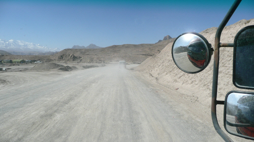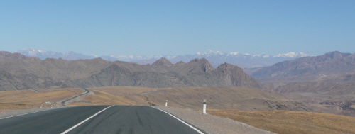 Descending to Sary Tash…..the photo doesn’t even come close to the spectacle we saw in real life as the snowy peaks stretched into the distance left and right as far as the eye could see.