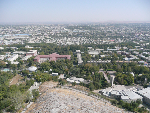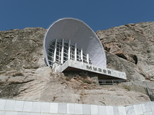 Solomon’s Throne in Osh, viewed from our hotel window. It looks vaguely like a reclining pregnant woman and couples apparently go there to pray for fecundity.