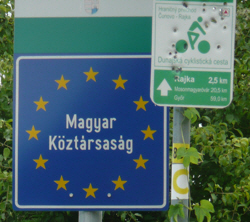 From Bratislava it was only a short distance to the Hungarian border, where it really felt like our journey was starting to get adventurous as the veloroute sign was full of bullet holes….what sort of reception should we expect as we headed down the road??