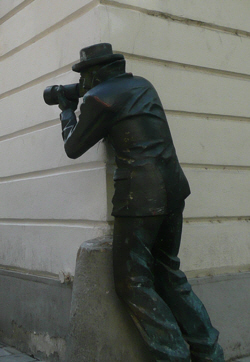 Ignoring the shortcomings of the campsite in Bratislava, the city itself turned out to be really pleasant. The old centre is not too big and is full of quirky buildings, bridges and statues…including the world’s narrowest building, a bridge that has a UFO on top of it, and a statue of a paparazzi snapper sneaking a photo around the side of the building. As usual, the Pino was the centre of attention and it was difficult to get anywhere without having to stop and answer questions and pose for photos.