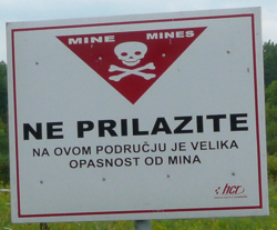 You have to be careful where you wild camp in Croatia. Not only is wild camping illegal (as it has been in almost all other countries we’ve been through so far – not that it’s stopped us) but there are still landmines left over from the conflict. These areas are marked with signs, but the extent of the danger zone is not particularly clear and in some areas the guidebook advises not to step off the road under any circumstances.