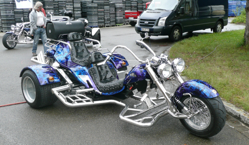 En route we passed through a small town called Günzburg where we were just caught the tail-end of a 3-day trikefest. Chrome, leather and beards abounded and we saw some fantastic Giger-esque paintwork and heard some insanely grunty Chevy V8 engines (yes, you could buy a motorbike – or trike – with a Chevy V8 engine in it!). The bikers (trikers?) seemed as intrigued by our transport as we were by theirs and we were the subject of a number of photos.