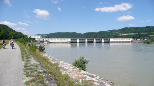 There were hydro-electric power stations on the Rhine between Germany & Switzerland about every 20kms or so and similarly on the German & early Austrian part of the Danube, but since mid-Austria, very few, although there is a very large hydro-electric station just beyond Bratislava in Slovakia just before the Danube passes into Hungary. The French who get over 70% of their electricity requirements from nuclear power, have at least 3 nuclear power stations along the Loire (a nuclear power station needs lots of water for cooling the reactors and for turning into steam to drive the turbines to make the electric) and the Swiss have one nuclear installation along their stretch of the Rhine (which we were told creates twice the amount of electricity as the 12 hydro-electric stations on the same stretch. Austria started to build a nuclear power station on the Danube but before completion there was an election and a change of government with an election promise of a referendum on the nuclear station – the people got their referendum and voted against, so build stopped and now they have what looks like a nuclear power station, but it doesn’t produce any power!! Governments – who’d ‘ave ‘em, eh??? Apparently we’ve yet to see the biggest dam on the Danube, built on a massive scale between Serbia & Romania in the 60’s & 70’s. Beside, is a picture of the Austrian hydro-electric power station at Ybbs with the barrage spanning the full width of the river.