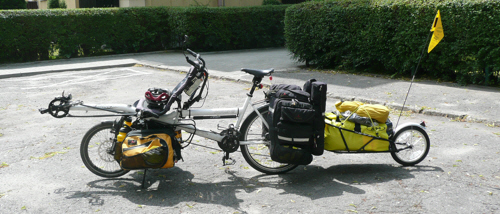 You may have noticed that our bike isn’t the most nimble of machines (see picture of bike complete with new BOB trailer which is behaving well after 1,000 kms so far) – it’s not your average racer or mountain-bike after all and when it comes to bouncing it up & down kerbs, and getting it around various bits of street furniture on the pavement, at speed, it gets really frustrating having to use these cycle-paths when all you’re trying to do, is get some decent distance covered in a reasonable amount of time. If you want safe routes for 10 year olds to cycle to school on, or for various folk to ride their bikes to the shops on, then cycle-paths are great, but in my opinion, when you’re wanting to get somewhere with a fully loaded touring tandem – committing yourself to a cycle-path, can be a risky business – it’ll end somewhere unexpected, or expect you to cross to the other side of the street at whim, or get you to stop at every T-junction you go past. All in all, your passage is much more hampered than that of the car travelling in the road just next to you … where you used to be allowed to ride your bike.