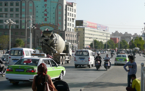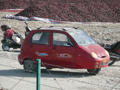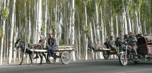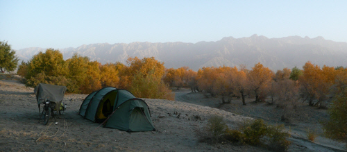 An interesting thing about China is that despite it’s being 4400km (2725 miles) from east to west, “officially” it is all in the same time zone, that of Beijing (GMT +8hrs). Beijing is in the east of the country, and GMT +8hrs, suits it well, but when you are about 3000 or 4000kms west of there, it means the morning sun doesn’t rise (at this time of year) until about 8:30am, and then doesn’t set until about 6:30pm. So if you have a habit of using the sun for rough navigation, then the midday sun is still well short of being south, and it can sometimes get a little confusing. Also, in the far west of China (Kashgar for example) they have an “unofficial” local time which is 2 hours different from Beijing, but as you travel east, the use of unofficial local time gets less and less until you reach Turpan, where they just do everything on Beijing time. This caught us out a couple of times, and we nearly got into trouble for not checking out of our hotel room on time, and restaurants seemed to close very early, until we realised we now needed to fully adopt Beijing time.