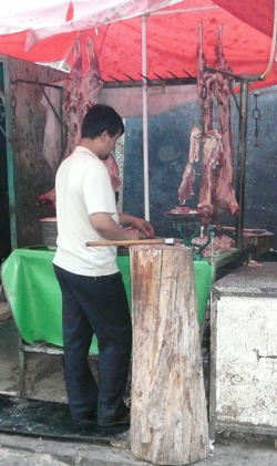 Another point of interest is the currency – the Yuan. There are a few coins in circulation, but it is really unusual to actually see any. Nearly always, all of your money is in paper notes. There are roughly 10 Yuan to the GB-pound at the moment, and the notes start at a value that is equivalent to 1 pence (or 0.1 of a Yuan). There is also a note for 0.5Yuan, then 1, 5, 10, 20, 50 and 100 – so equivalents to 5p, 10p, 50p, £1, £2, £5 & £10, all in paper money. So when you’re doing the shopping, you are constantly taking this fistful of notes from your pocket, also, everybody seems to be trained on how to handle large fistfuls of notes and they all count your change out in a very specific manner, folding the notes over their fingers to count them back to you – we haven’t mastered this yet.
