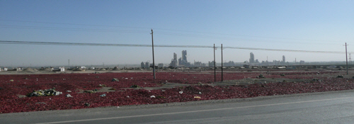 We couldn’t find the old 312 road as we left Hami so were stuck on its replacement, the tedious G30 dual-carriageway, with lots of trucks and little to see but boring gravelly desert stretching away into the ever-present smog. We were feeling pretty feeble and progress was slow, so on the Monday, when an English-speaking Chinese man stopped for a chat and to see if we wanted a lift we were sorely tempted. But he was only going a further 60km down the road so it didn’t seem worth it. We soon began to regret our decision though as the kilometres felt like they were taking forever.